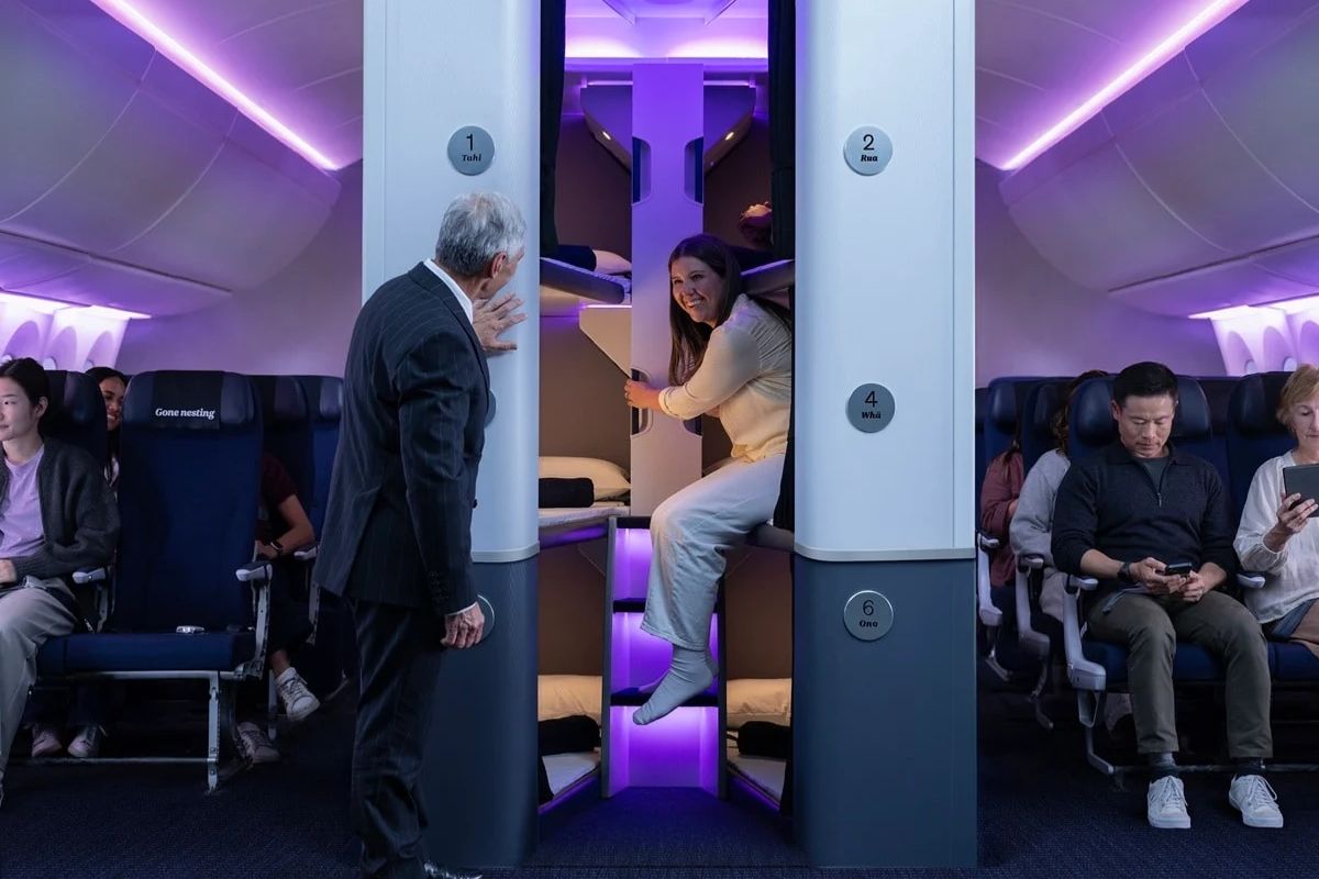 Air New Zealand is set to launch Skynest sleep pods for Economy passengers on ultra-long flights. Lie-flat bunk beds will be accessible starting November 2026, beginning at NZD $495 per session.